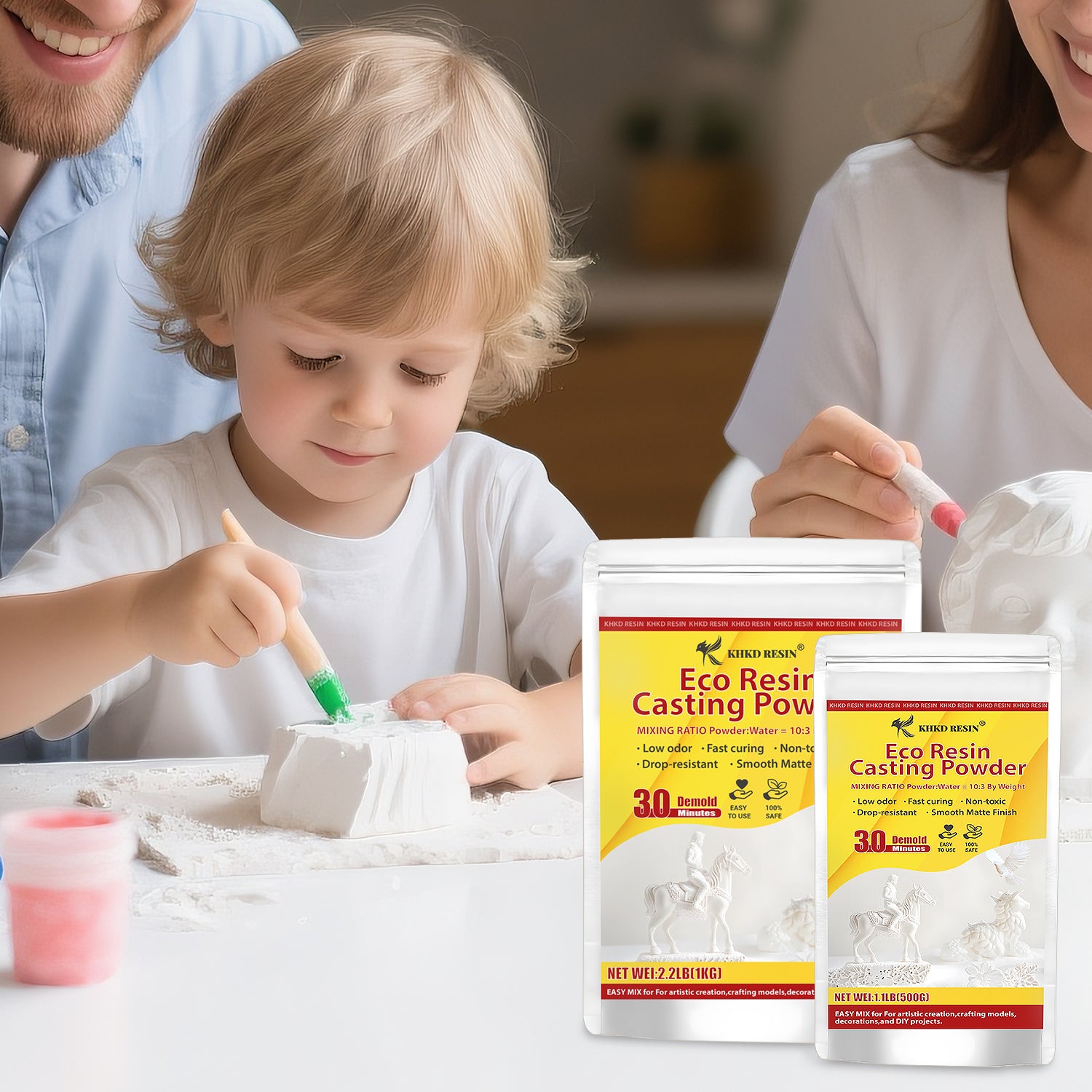 KHKD Resin is a safer, non-toxic choice with no VOCs, fumes, or solvents. It's non-flammable, non-hazardous, and ASTM D4236 certified—safe for home use with proper ventilation.